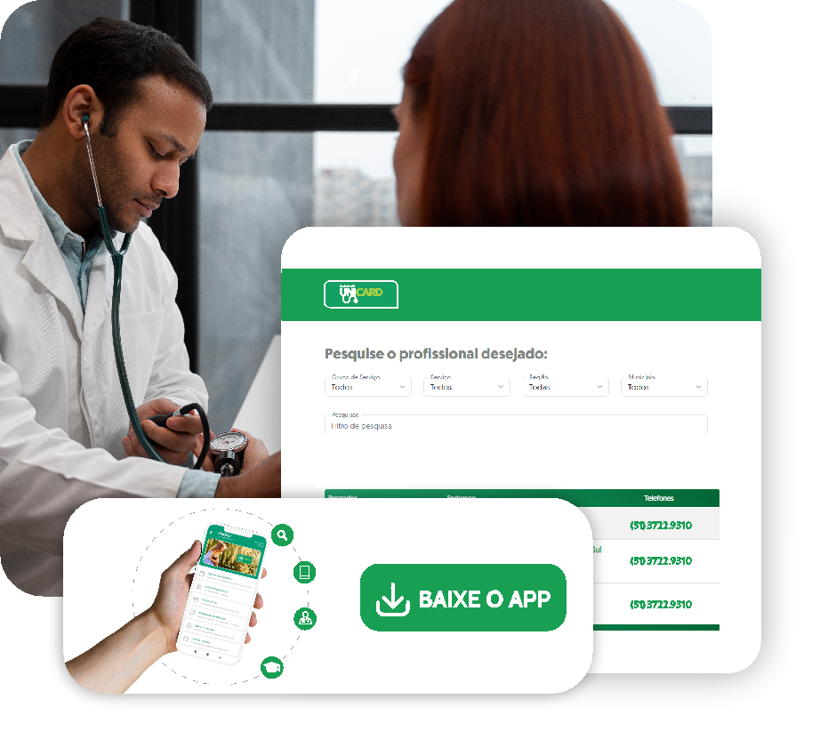 Com o Assistencial Unicard, em qualquer modalidade, você tem acesso ao aplicativo Unicard, com diversas funcionalidades como Cartão virtual, Extrato de consultas, Financeiro, Token de confirmação de consulta, Notícias e Guia médico e profissional.